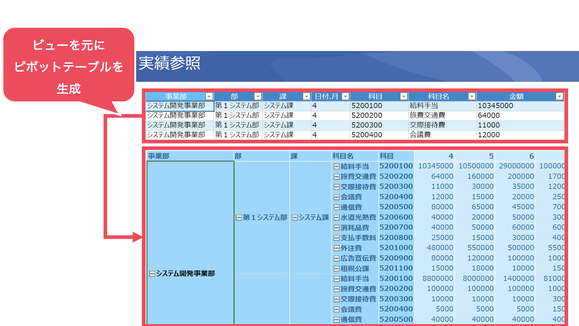 ピボットテーブルでデータを自動集計