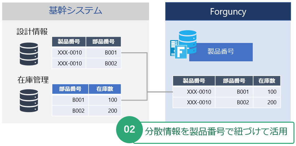 分散情報を製品番号で紐づけて活用